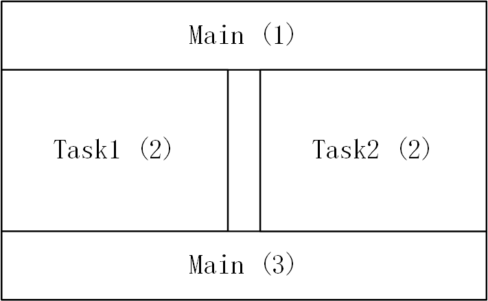注意到这里Task1与Task2所在的线程与主线程不同,且进入函数的时机不确定:可能出现先Task2后Task1。而在“假”异步多线程的情况,Task1一定先于Task2执行。
