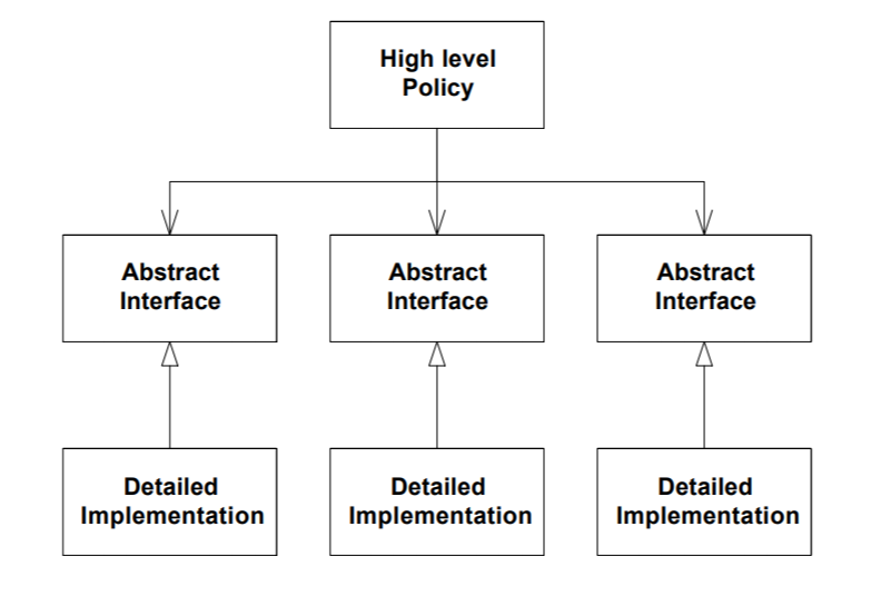 依赖倒置原则。程序依赖于抽象,而不要依赖于具体实现。如果说开闭原则指出了面向对象设计的目标,则依赖倒置原则就是达到目标主要的机制。类与类之间的耦合都通过接口完成,而非具体实现。