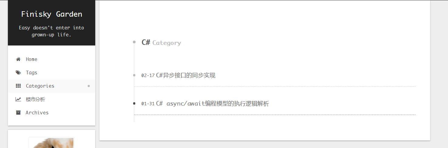 添加自定义分类菜单项比较容易,因为hexo-generator-category会为每个分类生成一个静态页面,并放在"/categories/分类名"之下,只不过它渲染出来的形式是时间线,本节先介绍如何增加此种形式的自定义菜单。