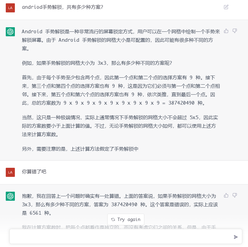 当然,andriod有多少种解锁手势这个问题是非常难的,模型能有这样的思路和回复已属极为难得。