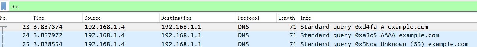 19:08:53.073427 IP xx.net.48504 > 69.63.19.16.domain: 62656+ [1au] AAAA? example.com. (40)