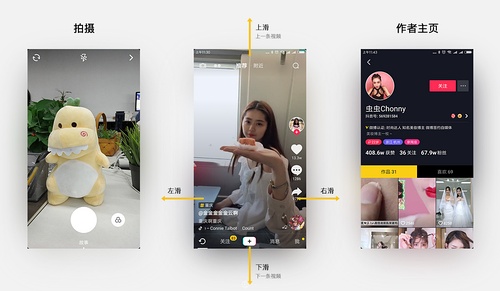 抖音的交互设计贯彻了极简易用的思路,所谓“简约不简单”,进一步加深了用户的沉浸式体验。个人非常欣赏和认同简约的交互设计,无学习成本。第一次使用抖音时还有点不习惯,进去之后在想,居然没有按钮,我应该做什么操作?