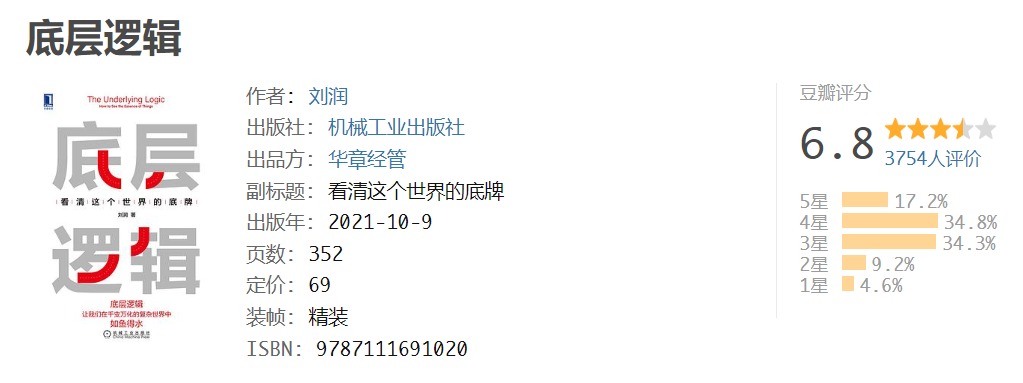 最后谈谈刘润的《底层逻辑》,我的评价是:书名起得太大,书写得既不底层,也没逻辑。