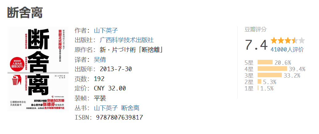 《断舍离》这书,在豆瓣上居然还有7.4的评分,不过看了大家的评价我就放心了。
