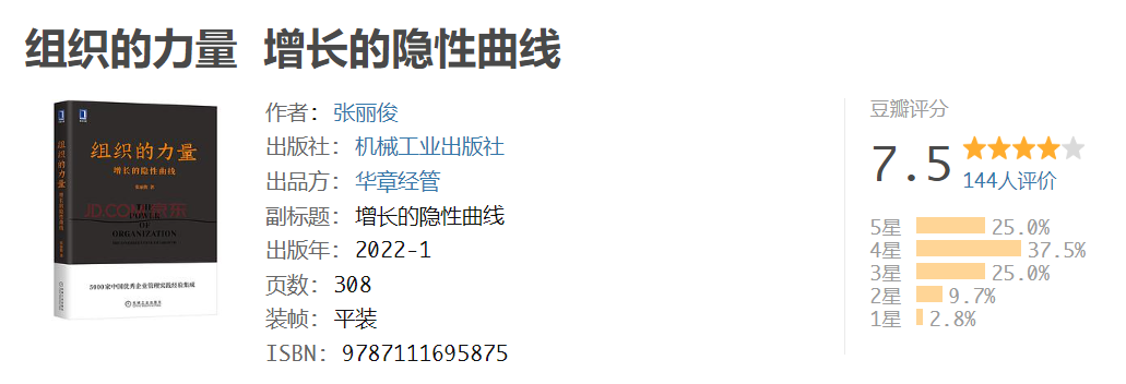 再来聊聊《组织的力量 增长的隐性曲线》,这书的书评就少多了,令人吃惊的是,还有7.5的评分: