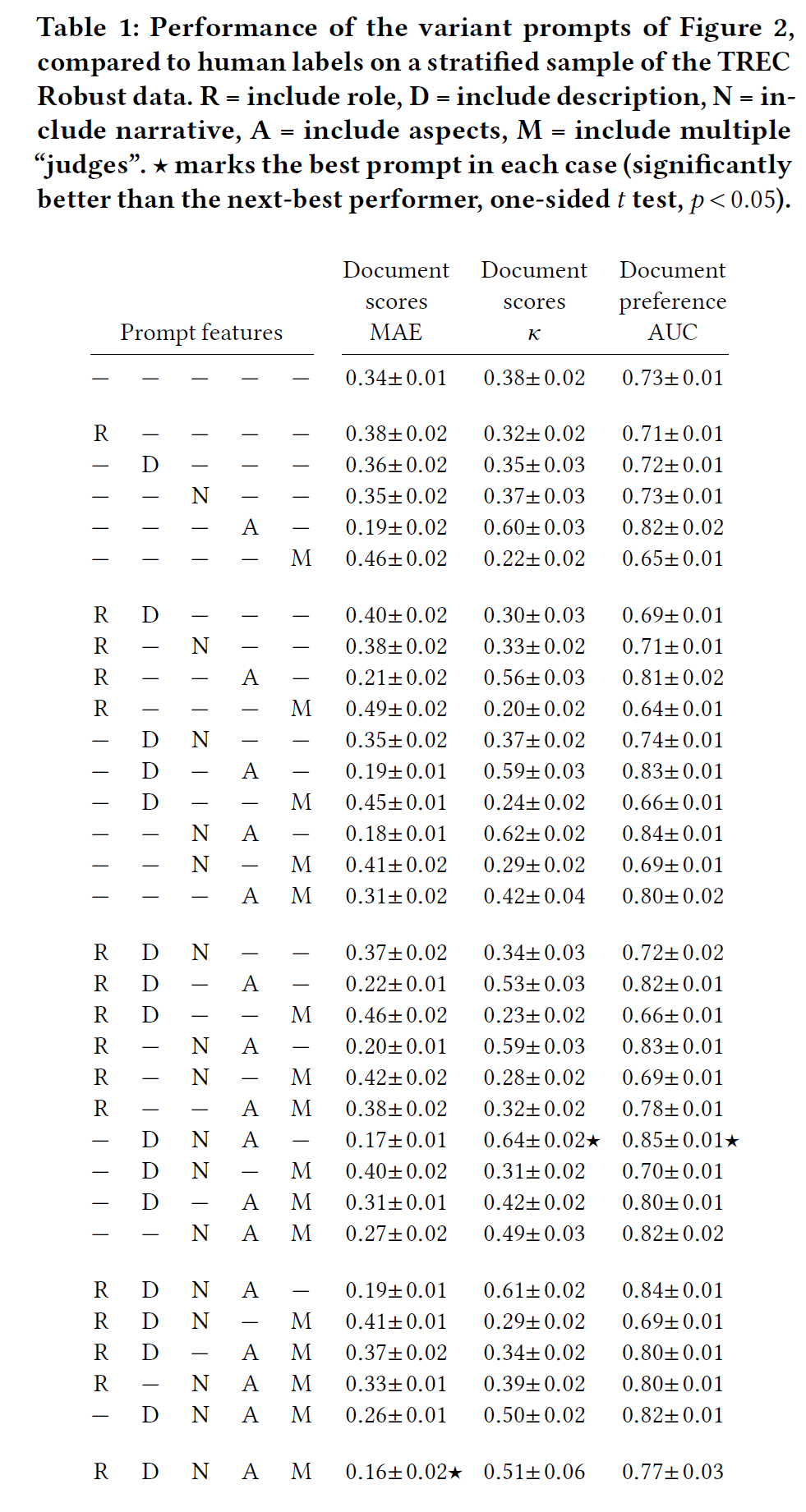 论文首先使用TREC-Robust 2004数据集验证了想法,看LLM 是否能够复现由专家标注员生成的原始 TREC 标签,然后主要问题就在于Prompt Tuning。