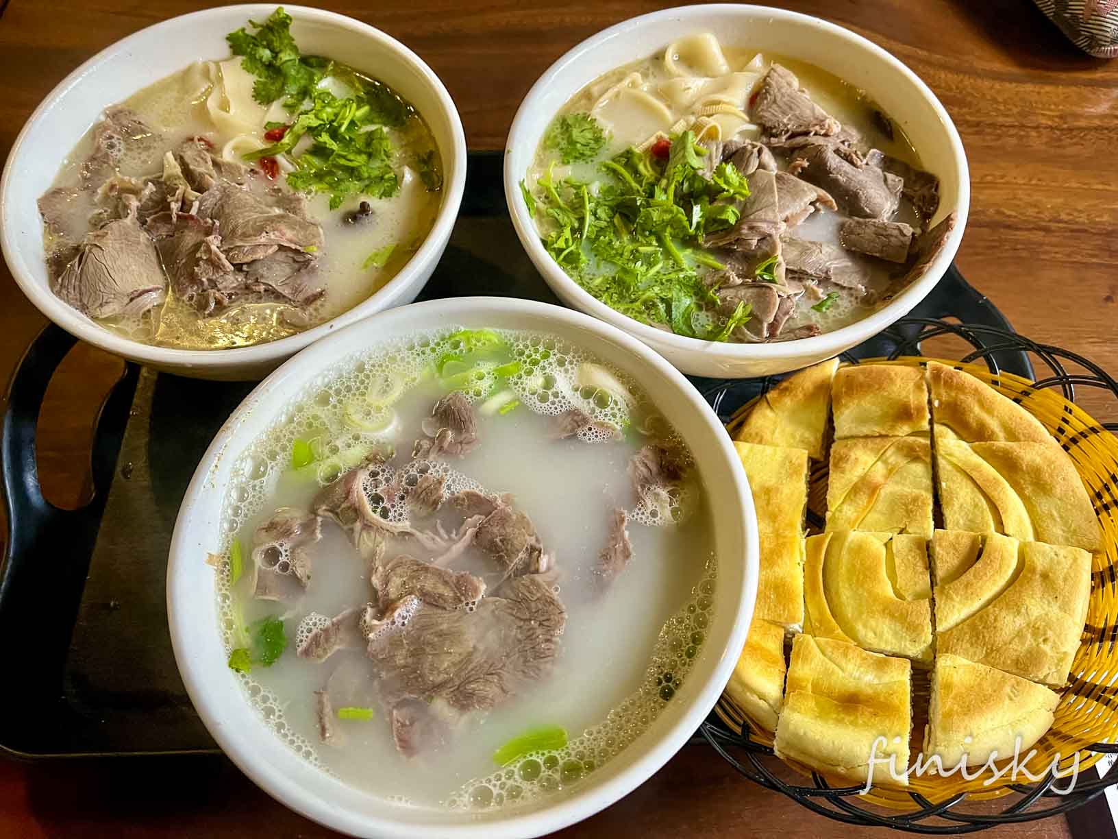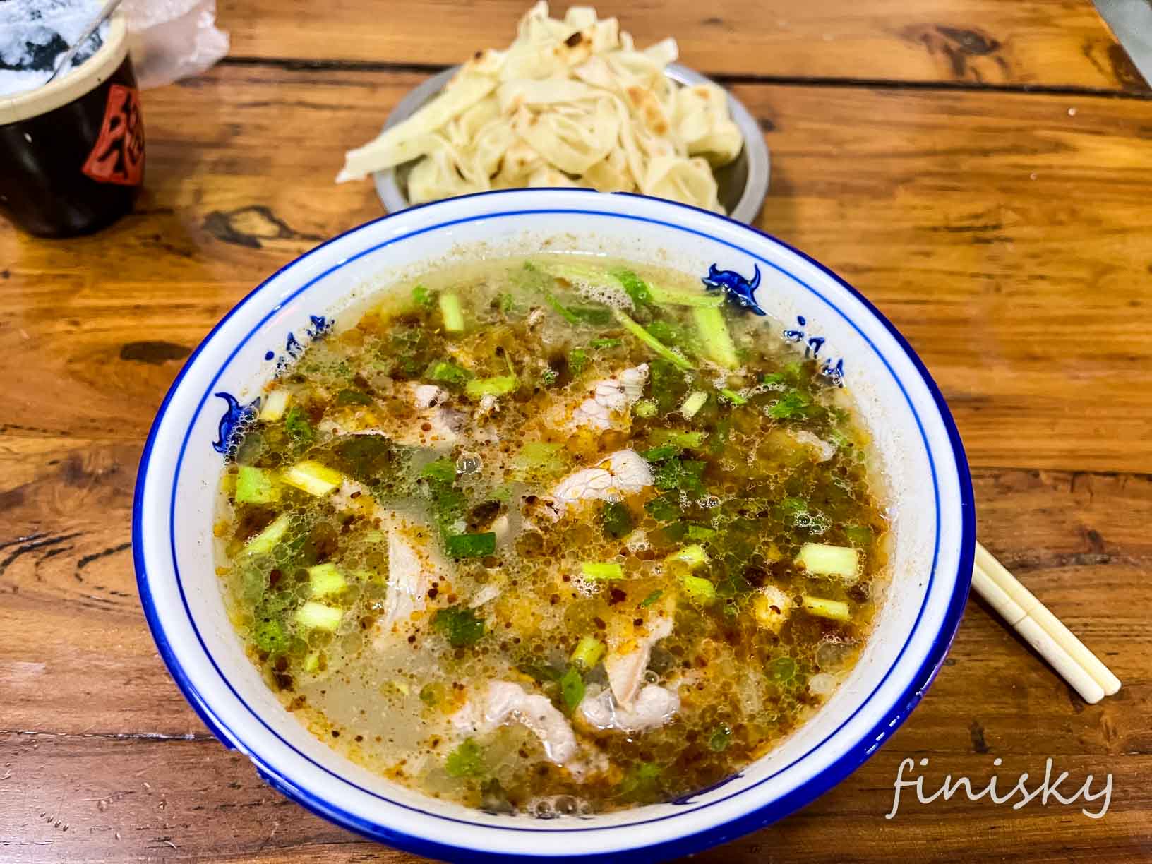 河南汤馆点汤都是多少钱都行,只收肉钱,汤免费且无限续。点了15一碗的牛肉汤,牛肉还真不少,还送饼丝。取汤时小哥会问你要牛肉还是牛腩,默认是牛肉片,汤盛出来自己放盐和辣椒。汤味纯正浓郁,非常不错,是此行中最佳一餐: