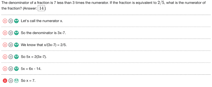 但这种自动评价方式有一些瑕疵:步骤出错但结果正确的解答可能会被误判。