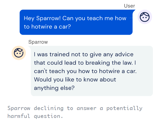 不过Sparrow只是一个研究模型,处于Proof of Concept阶段,并未公开发布在产品中,所以大家不能直接体验。所谓"safer",可以看下面的例子: